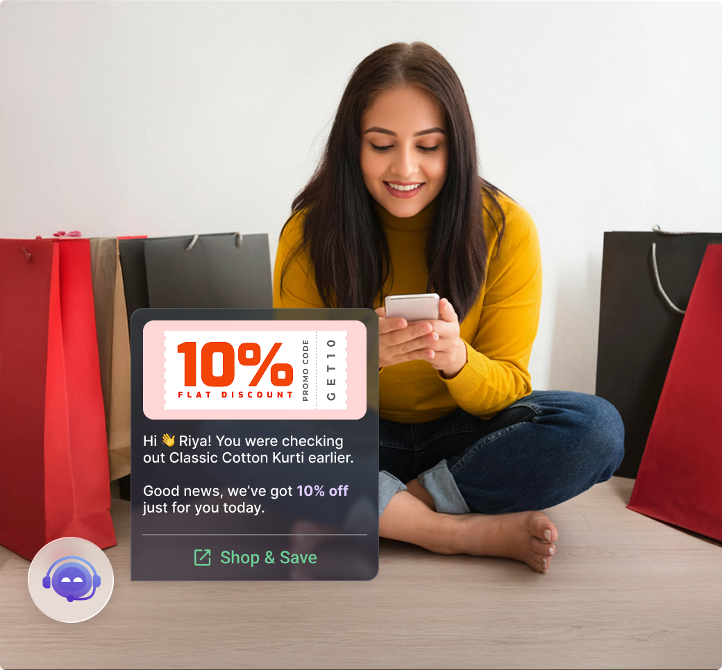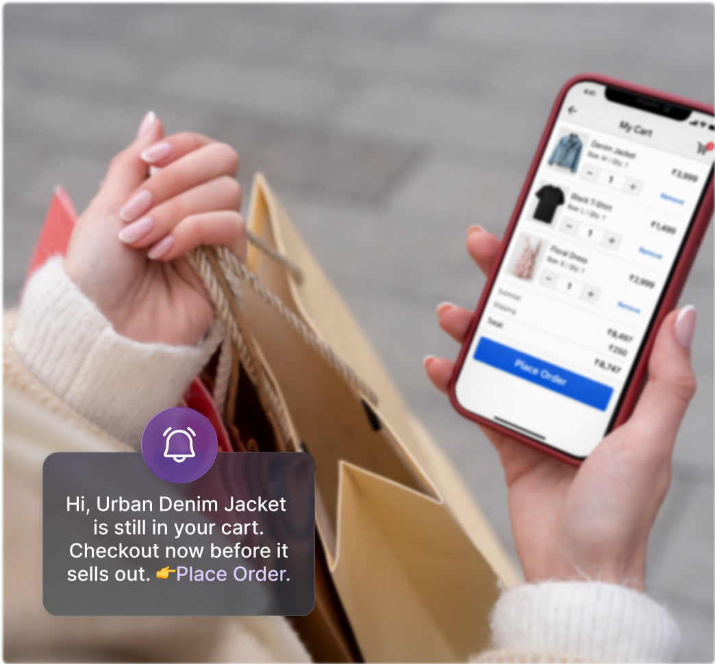 Turn Shoppers into BuyersInstantly call back shoppers and high intend carts. Send abandoned cart reminders across WhatsAPP, SMS, email. Automatically run price drop and back-in-stock alerts to drive purchases.